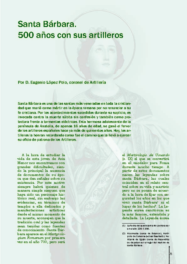 Sta Bárbara, 500 años de devoción artillera Eugenio López Polo
