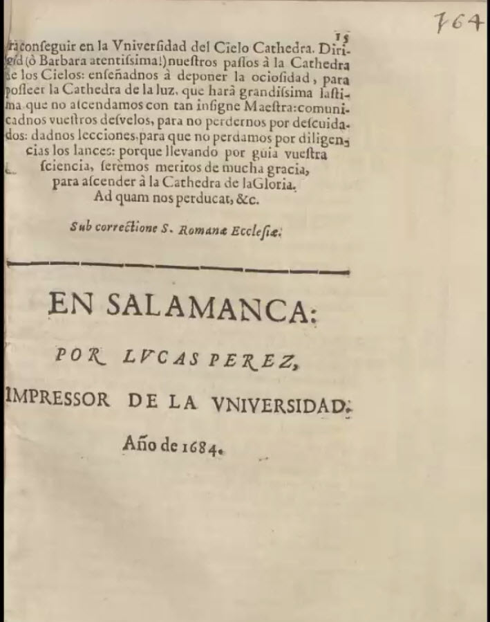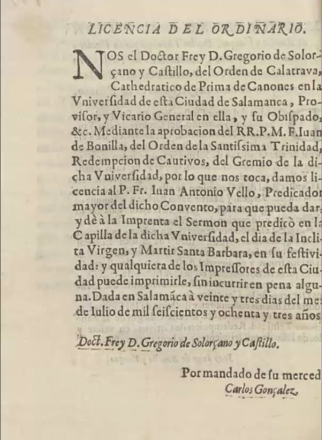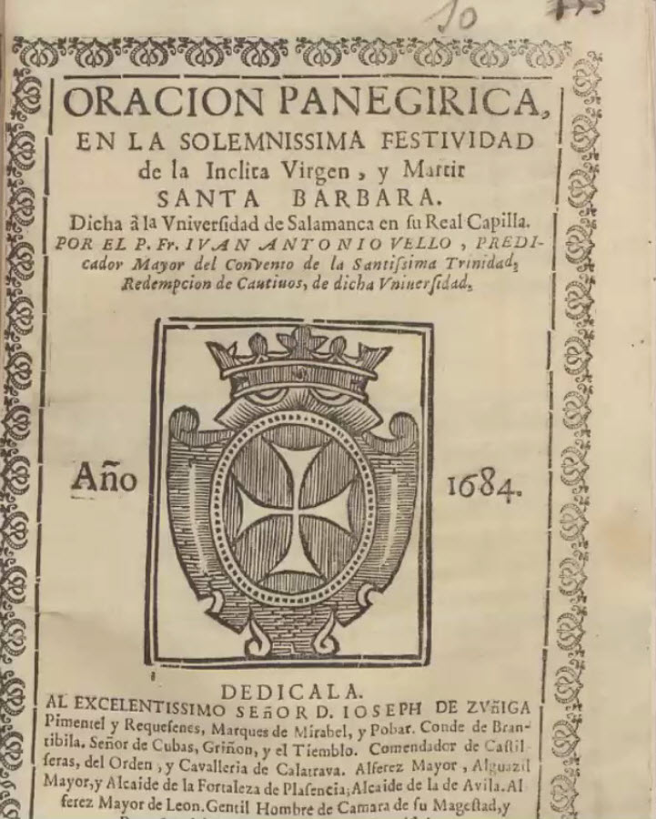 ORACIÓN PANEGÍRICA DE LA FESTIVIDAD DE STA BÁRBARA 1684