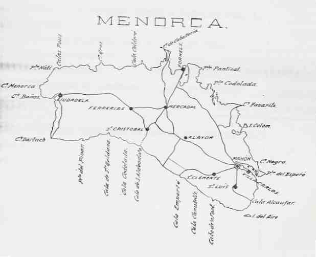 distancia a Mahón era de 13 Km. en línea recta, distando, también en línea