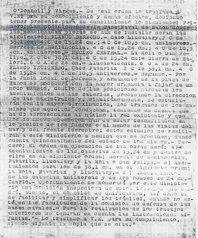 de la Base Naval de Mahón; en la carpeta n1 126 del Archivo de