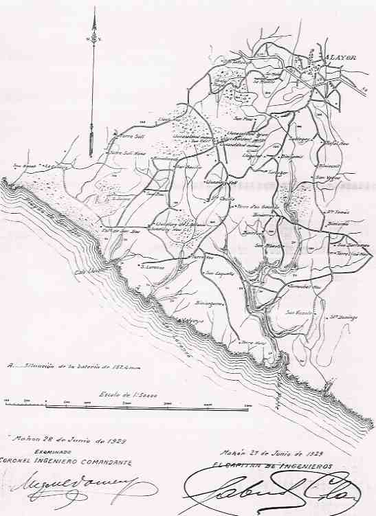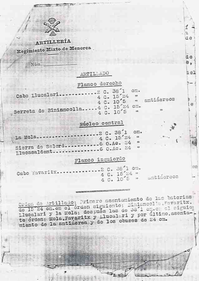 calas de San Lorenzo y Llucalary, a la derecha de la Batería de 15,24 y a