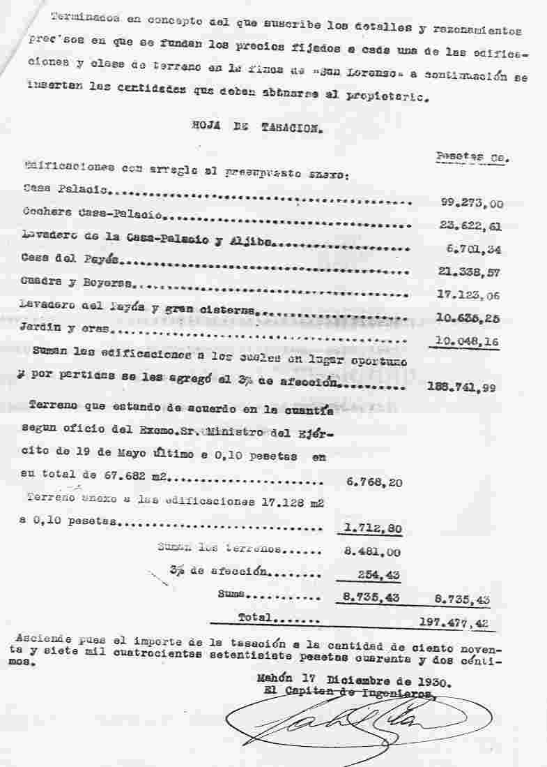 de 1929, un Acta de valoración razonada de los terrenos que habían