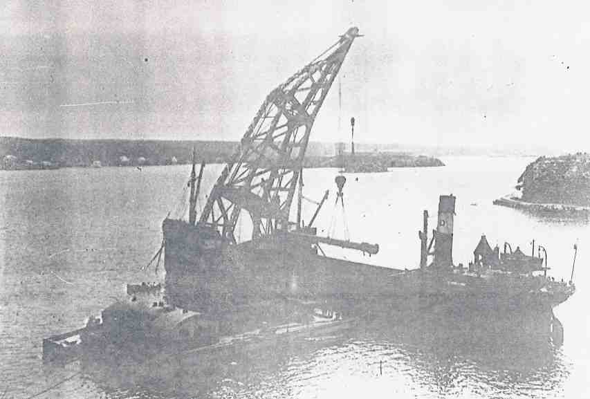 cañones de gran tonelaje una grúa flotante Samson, de 100 toneladas, traída