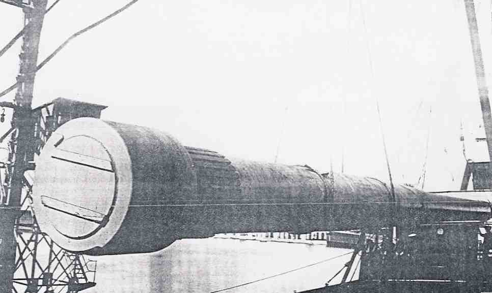 descarga de los tubos (de 9 toneladas) de las baterías pequeñas. Los